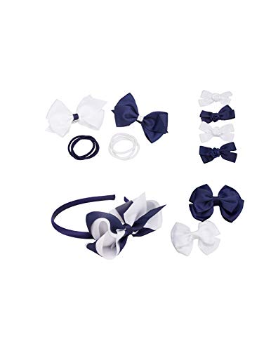 French Toast Kid's School Uniform Bow Clips, Headband and Ponytail Holders, 4-pack, Navy Blue & White, One Size