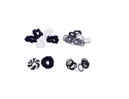 French Toast Kid's School Uniform Assorted Ponytail Holders 4-pack, Navy Blue & White, One Size
