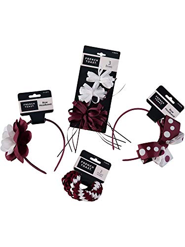 French Toast Kid's School Uniform Ponytail Holders and Headbands, 4-pack, Burgundy & White, One Size