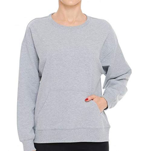French Terry Crew Neck Long Sleeve Sweatshirt with Kangaroo Pockets