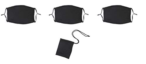 Reusable Washable Cotton Face Masks for Women Men - 3 Pack- Assorted Design Cloth Adjustable Mask with Carrying Pouch (Black)
