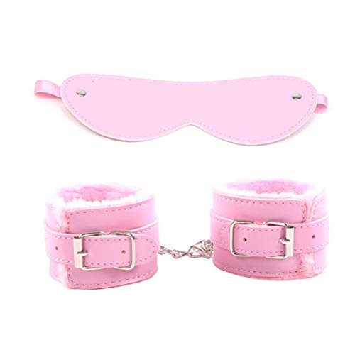 HSBHSJ plush pink Wrist Cuffs with Leather Blindfold for women