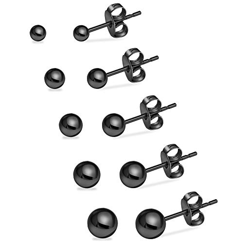 UHIBROS Hypoallergenic Studs Earrings 316L Surgical Stainless Steel Round Ball Earring 5 Pairs Assorted Sizes(4mm-8mm)