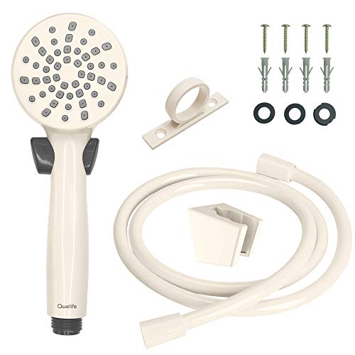 RV Shower Head with Hose and On Off Switch, Water Saving High Pressure Shower Head with Shower Hose Guide Ring and Shower Holder for RV, Camper, Van, Travel Trailer, Motorhome, Boat, Bisque Parchment