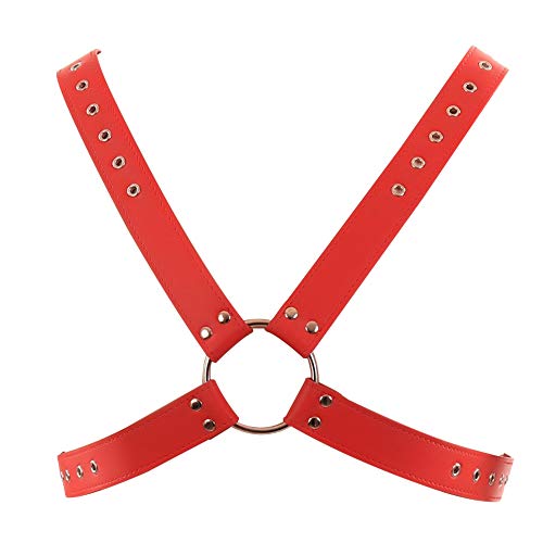 Red Leather Harness for Men, Premium Adjustable Punk Men Body Chest Harness for Clubwear Parties