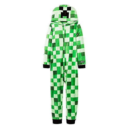 Mojang Boy's Mob Creeper Fleece Hooded Union Suit Pajama Sleeper (Large 10/12)