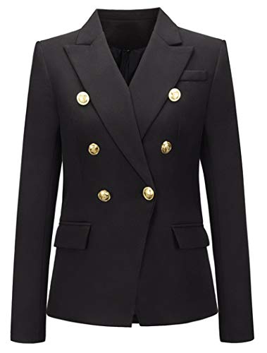 Women's Double Breasted Lapel Collar Work Office Black Blazer Jacket with Pockets,Black, Size Medium (M)
