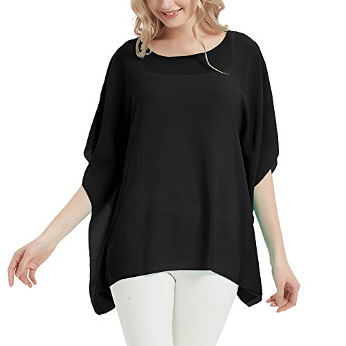 Vanbuy Women Summer Floral Printed Shirt Batwing Sleeve Top Chiffon Poncho Casual Loose Blouse