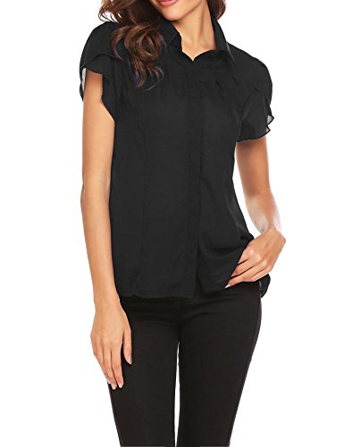 Beyove Womens Short Sleeve Casual Office Work Chiffon Blouse Shirts Tops