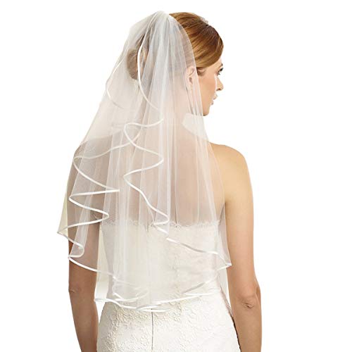 Bridal Veil Women's Simple Tulle Short Bachelorette Party Wedding Veil Ribbon Edge With Comb for Wedding Hen Party