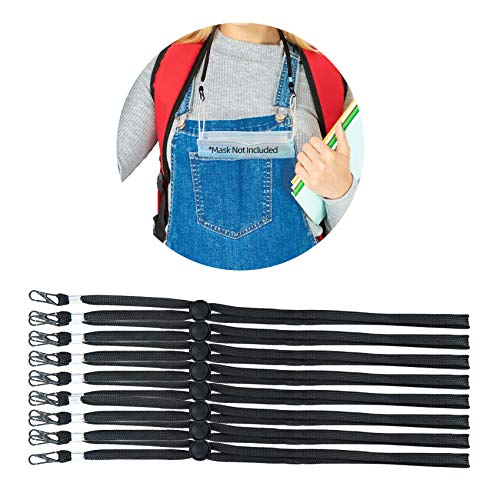 AOTDAOU Face Mask Lanyard for Kids&Adult with Clips, Face Covering Accessories, Lanyard Straps Necklace Durable Cord for School&Work, Ajustable Stopper Ear Saver, Mask Chain Holder (8, Black)