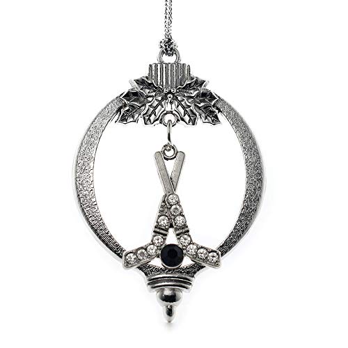 Inspired Silver - Hockey Sticks & Puck Charm Ornament - Silver Customized Charm Holiday Ornaments with Cubic Zirconia Jewelry
