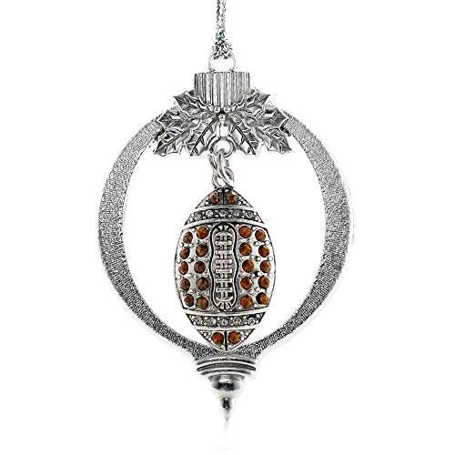 Inspired Silver - Football Charm Ornament - Silver Customized Charm Holiday Ornaments with Cubic Zirconia Jewelry