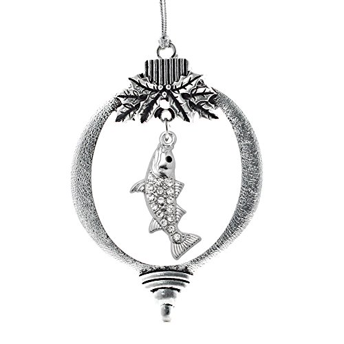 Inspired Silver - 1.5 Carat Fish Charm Charm Ornament - Silver Customized Charm Holiday Ornaments with Cubic Zirconia Jewelry