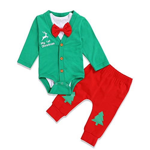 Baby Boys My 1st Christmas Outfits Baby Kids Gentleman Christmas Romper Bodysuit + Pants 3Pcs Clothes Sets