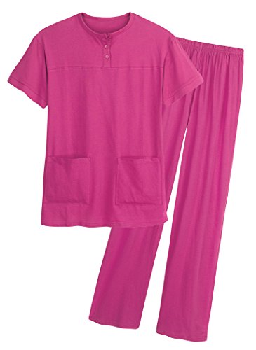AmeriMark Women's Henley Pant Set – Short Sleeve Top with Pocket & Pull-On Pants