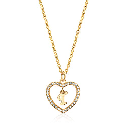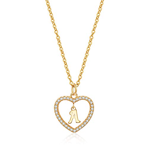 Initial Heart Necklace for Women 14K Real Gold Plated CZ Heart Letter A to Z Name Alphabet Pendant Necklace