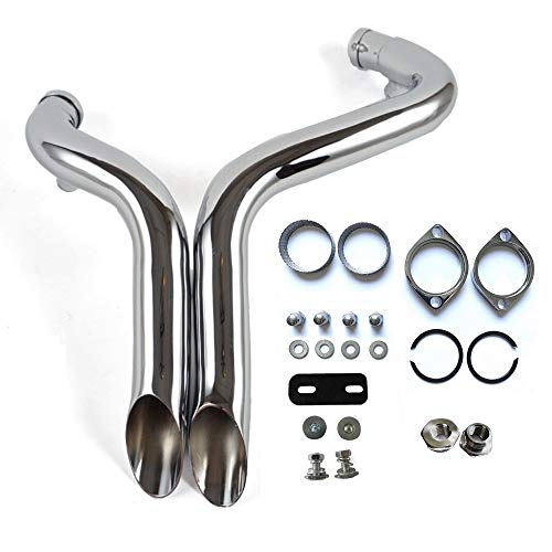 SHARKROAD Chrome 2" LAF Drag Pipes Exhaust For Harley Softail Sportster 1984-2015 with Flange Kit