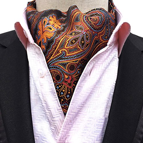 HISDERN Stripe Check Cravat Ascot Tie for Men Wedding Party Cravat Scarf
