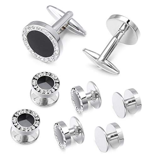 AMITER Cufflinks and Tuxedo Shirt Studs Set for Men Silver/Rose Gold - Best Gifts for Wedding Business