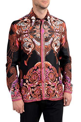 Versace Collection Trend Men's 100% Silk Graphic Long Sleeve Dress Shirt Sz US 17 IT 43
