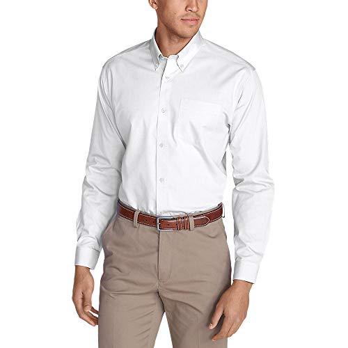 Eddie Bauer Men's Wrinkle-Free Slim Fit Long-Sleeve Pinpoint Oxford Shirt - Solid, White, Tall L