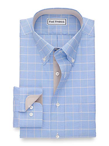 Paul Fredrick Men's Tailored Fit Non-Iron Cotton Plaid Button Down Dress Shirt