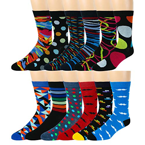 Boy's Pattern Dress Funky Fun Colorful Socks 12 Assorted Patterns Size 3-9