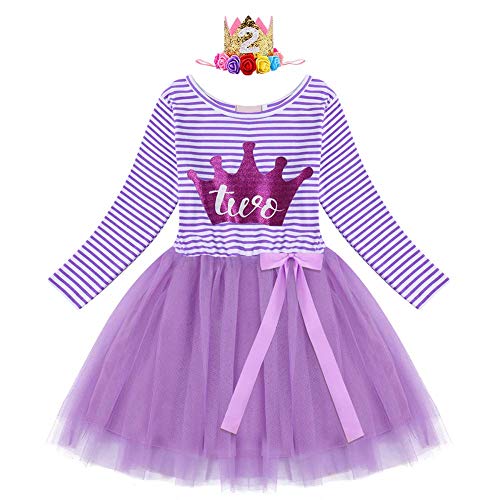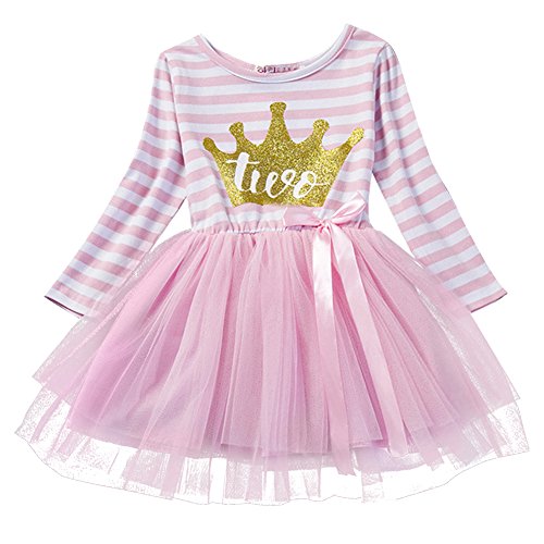 Baby Girls 1st/2nd/3rd Birthday Long Sleeve Princess Cake Smash Baptism Crown Tulle Party Dress Striped Outfit Tutu Gown
