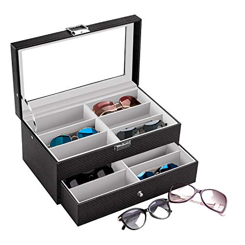 bestwishes Carbon Fiber Sunglasses Organizer for Women Men, Eyeglasses Collector Eyewear Display Case Storage Box,Sunglasses Jewelry Collection Case, Sunglass Glasses Storage (12 Compartments Black)