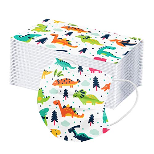 3 Ply Non-Woven and Breathable, Cute Cartoon 50Pcs Face+Bandanas with Cute Printing, No Washable,Anti-Haze Dust, for Kids