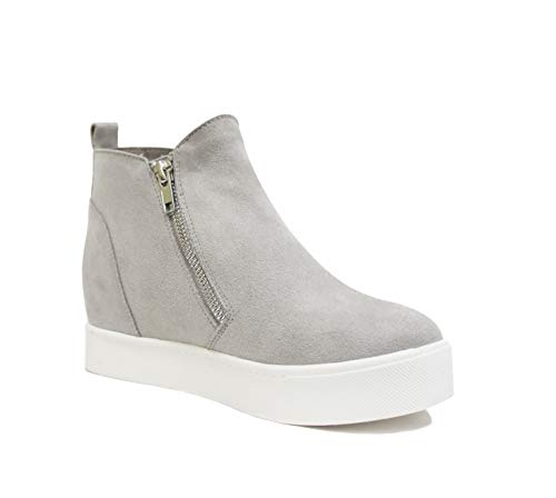 Soda` Taylor Hidden Wedge Sneaker Shoes Side Zipper Light Grey (8)