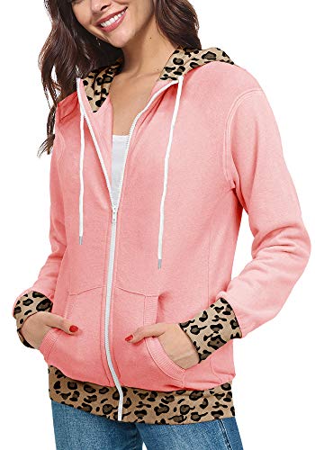 ETCYY NEW Women Leopard Print Jacket Hoodies Coat Rainbow Sweatshirt Zip Up Cardigan with Pocket Outwear