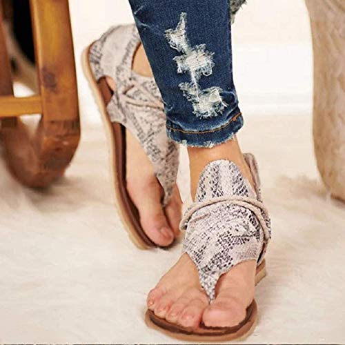 Ecolley Retro Sandals for Women Open Toe Fashion Printed Casual Flat Sandals Smooth Size 37