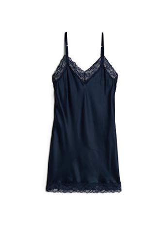 Avidlove Women's Nightwear Sexy Satin Sleepwear Lace Chemises Mini Full Slip Deep Blue Small