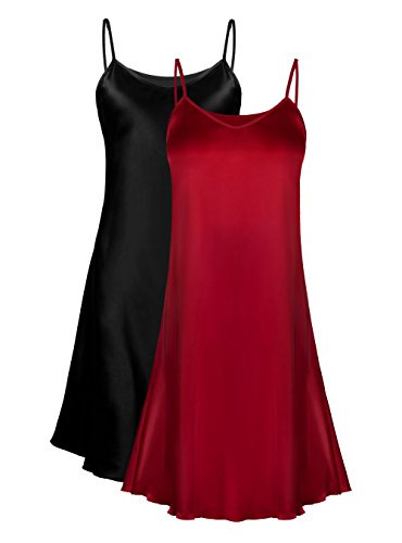 Genuwin 2 Pack Women’s Satin Full Slip Dress Chemise Sleepshirt Nightgowns for Women S~2XL