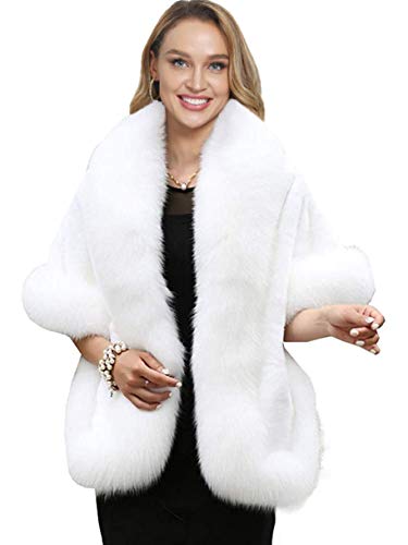 Caracilia Women's Faux Fur Coat Wedding Cloak Cape Shawl for Evening Party