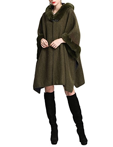 Gihuo Women's Batwing Faux Fur Hooded Cloak Poncho Cape