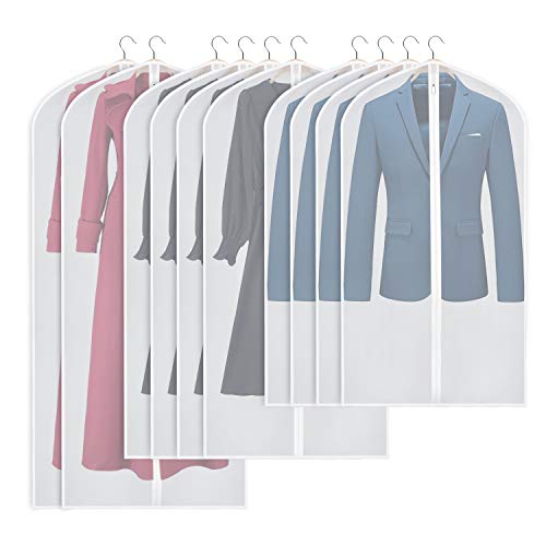 Univivi Garment Bags Lightweight Translucent Full Zipper Suit Bags (Set of 10) Hanging Dress Bag Washable Moth-Proof Dust Cover for Closet Clothes Storage -40/50/60inch