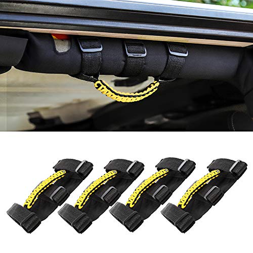 Savadicar 4 x Roll Bar Grab Handles Grip Handle for Jeep Wrangler YJ TJ JK JL & Gladiator JT 1987-2020, Interior Accessories, Yellow