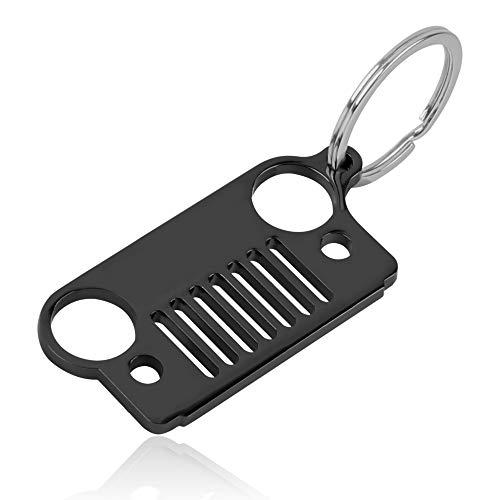 Early Bus Jeep Grille Keychain,Stainless Steel Car Keyring (Never Rust or Break) for Jeep Wrangler Grand Cherokee Compass Renagade Patriot CJ, JK, JKU, TJ, YJ, XJ (Black 1)