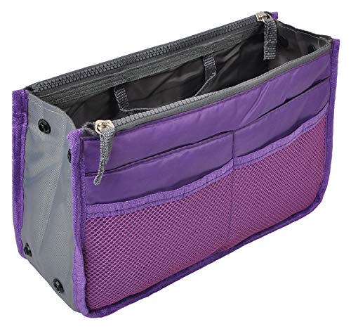 Vercord Purse Organizer Insert for Handbags Bag Organizers Inside Tote Pocketbook Women Nurse Nylon 13 Pockets Purple Small