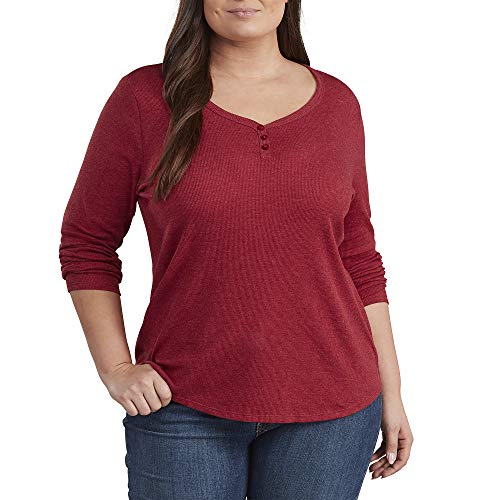 Dickies Women's Plus Size Long-Sleeve 3-Button Henley Shirt, Aged Brick Single Dye, 2PS