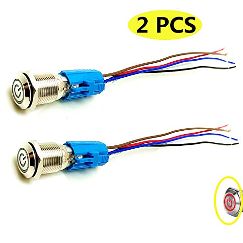 Viping Car Horn Button 12V 16mm LED On/Off Switch Momentary Button Reset Switch Dedicated Connector Switch Power Metal Toggle Switch Car RVTruck Boat Motorcycle DIY Switch LED Red self-locking 2 pack