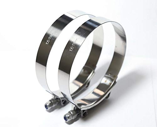 LTI Working Range 106mm-114mm T-Bolt Clamps High PSI Premium Quality Full 304 Stainless Steel Turbo Intercooler Hose For 4" ID Hose (2 Pack)