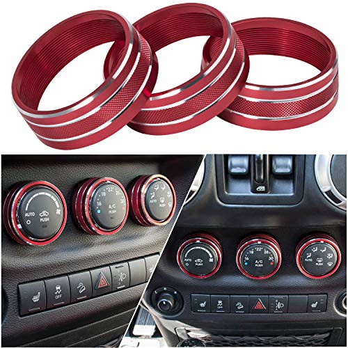 Danti 3pcs Audio Air Conditioning Button Cover Decoration Twist Switch Ring Trim for Jeep Wrangler JK JKU Patriot Liberty 2011-2018 Dodge Challenger 2008-2014 (Red)