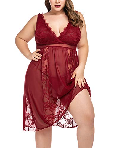 Avidlove Womens Sexy Long Red Lace Lingerie Nightdress Sheer Nightgown Chemise,Medium,Dark Red