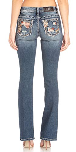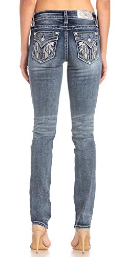 Miss Me Women's Mid-Rise Straight Leg Denim Jeans with Wings Faux Flap Pockets