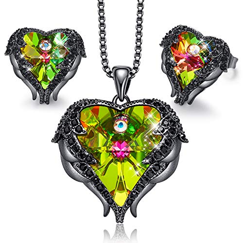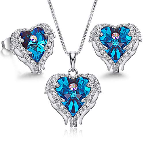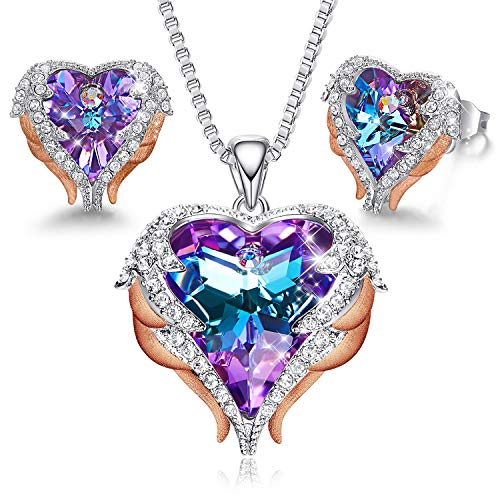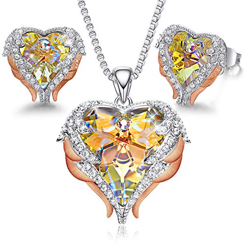 CDE Angel Wing Love Heart Necklaces and Earrings Silver Tone/Gold Tone Jewelry Sets Birthday/Anniversary Christmas Jewelry Gifts for Women Mom/Wife/Sister/Best Friend