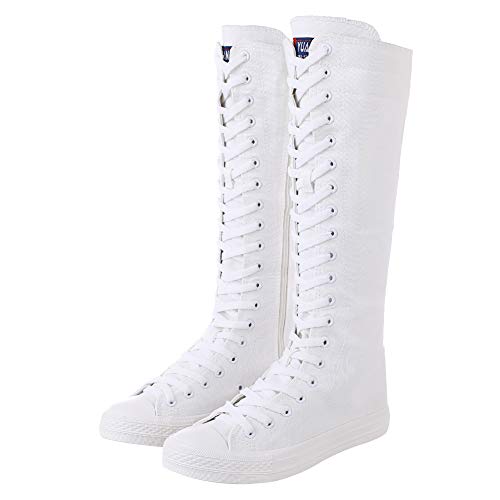 Momuk Women's Fashion Lace Up Knee High Canvas Zip Boots Girls Fancy School Shoes Size 11 B(M) US White